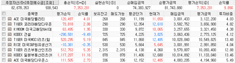 월세를 주는 ETF들이라 큰 이슈 없으면 계속 유지합니다.