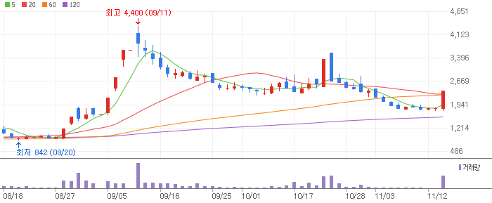 메타랩스 (+29.79%) 3분기 실적 개선에 상한가