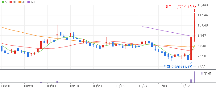 | 오늘의 상한가 및 급등주 - 반도체 주 강세, 로킷헬스케어 그린광학 쎄크 이수화학 코리아써키트 이수페타시스 서부T&D 비나텍 (0) | 2025.11.17 |