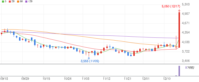 넥스트칩 주가가 초강세를 보이고 있다.17일 한국거래소에 따르면, 이날 오전 10시 40분 현재 20.13% 올라 4805원에 거래되고 있다.주가는 5일 이평선을 타고 가파르게 오르고 있다.자율주행과 첨단