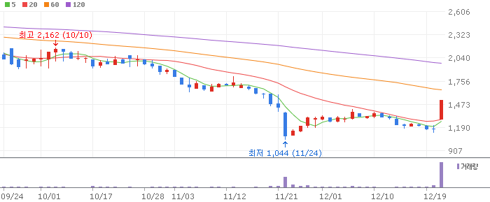 [서울와이어=김민수 기자] 아이씨에이치가 유상증자 결정 소식에 상한가를 기록했다. 23일 오전 9시20분 기준 아이씨에이치는 전 거래일 대비 29.94% 오른 1519원에 거래되고 있다.아이씨에이치는
