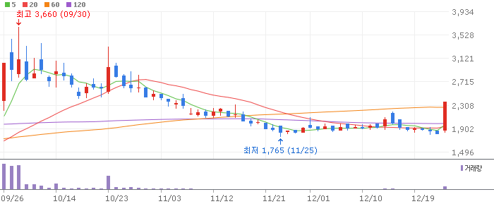 현대약품 (+15.56%) 당뇨병혁신 신약 ‘HDNO-1605’ 2a상 유효성 입증 모멘텀 지속에 급등