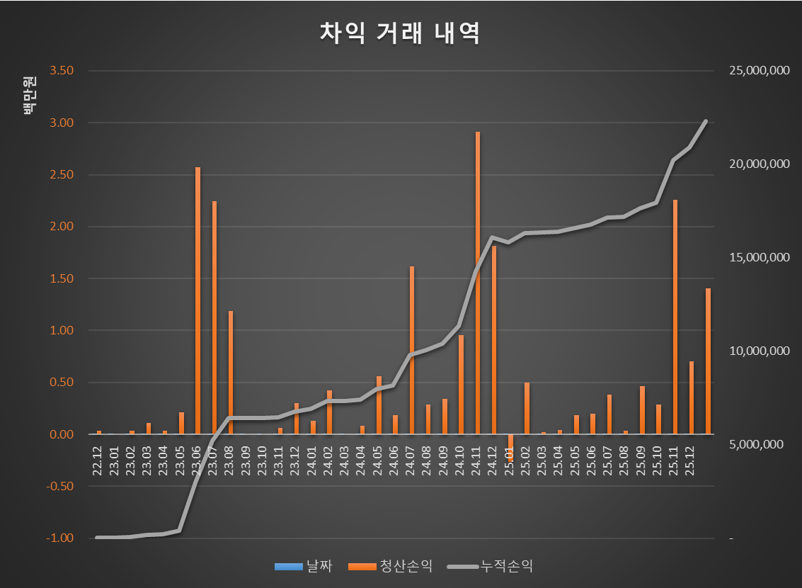 올해 차익거래 수익 목표를 높지 않게 천만 원 이하로.. 5백 이상으로만 잡고 있었는데, 어떻게 1월에 대략 1/4를 달성해 버렸습니다.