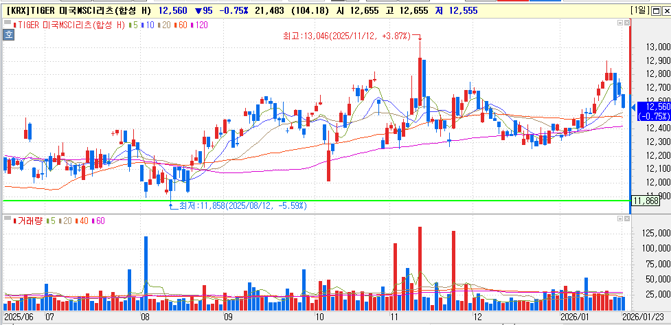 달러 하락 및 국제 정세가 혼돈인 시점 기축통화로 비교적 안전자산으로 평가받는 상품으로 리스크 햇지를 위해서 매수했습니다. 금리 액티브 ETF가 있기에 비중은 계좌 10%를 넘기지 않을 예정이며, 바닥권으로 보여 조금씩 더 매수를 할 예정입니다.