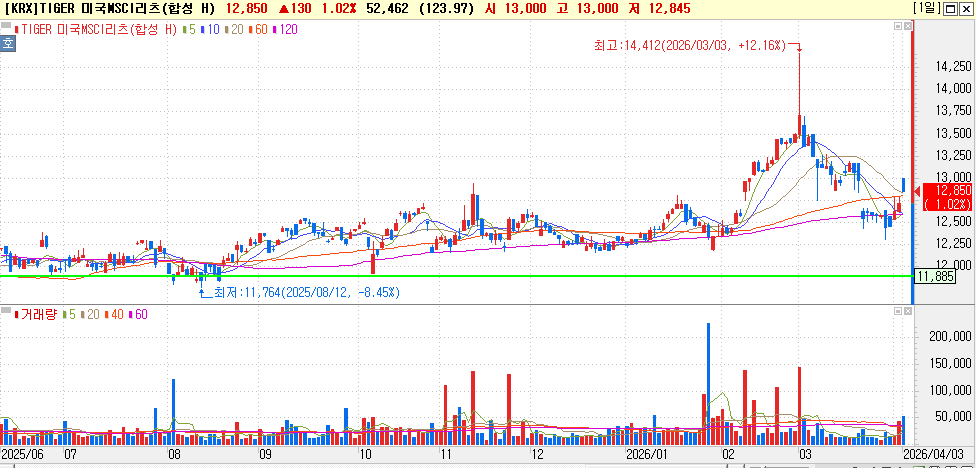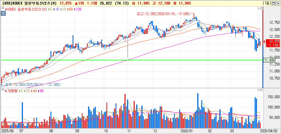 TIGER 미국MSCI 리츠(합성 H) / TIGER 리츠부동산인프라 / KODEX 일본부동산리츠 (H) / KODEX 한국부동산리츠인프라