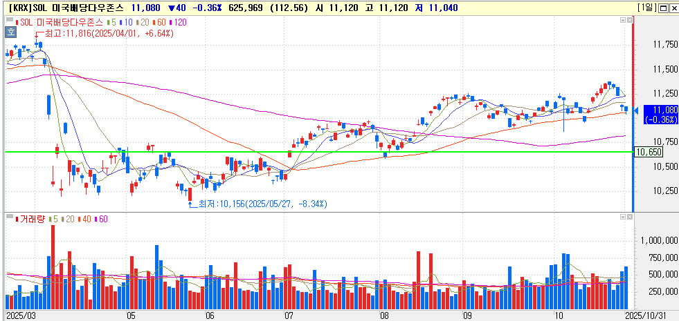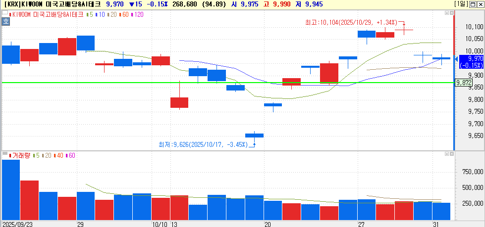 SCHD 추종 상품들인데 마찬가지로 최근 상승율은 미미합니다.